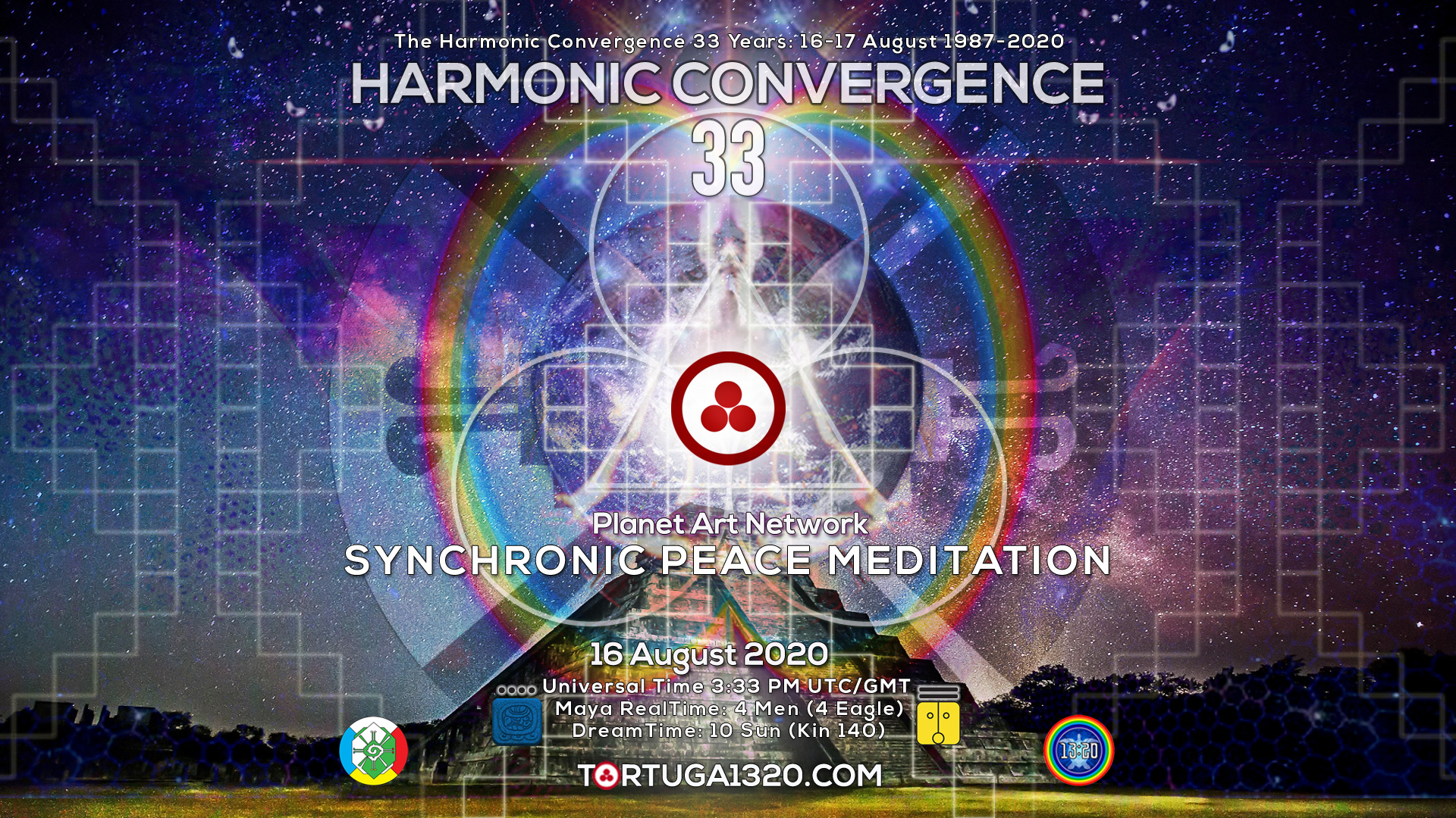 Join the Harmonic Convergence 33 Synchronic Peace Meditation, coordinated by the Planet Art Network (PAN) on this 16th of August 2020 at 3:33 PM Universal Time (15:33 hr UTC/GMT). See you there! ❤